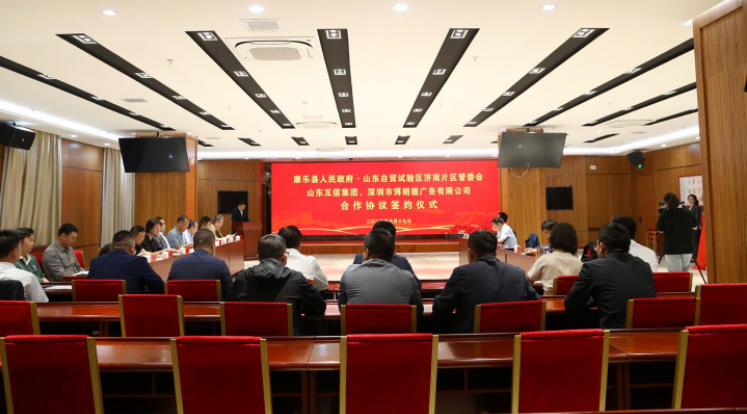 2023年6月19日,集团与甘肃省康乐县人民政府合作协议签约仪式举行,康乐县县委副书记、县长马文吉参加仪式并致辞,山东自贸试验区济南片区管委会副主任随洪光参加仪式并讲话,集团董事长李辉参加仪式并签约,康乐县副县长马志龙主持仪式。集团副总经理临夏州项目负责人李铭、深圳市博朗德广告有限公司董事长林河水等考察组成员和副县长王奇参加。