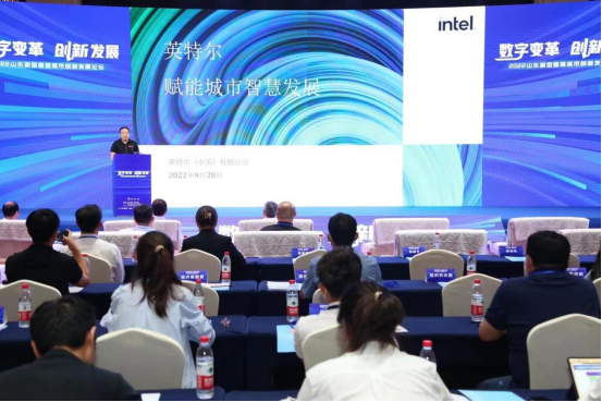 联想山东新兴市场业务总经理董建垒,代表英特尔中国有限公司就《英特尔赋能城市智慧发展》做出主题分享,他表示当前中国智慧城市建设已经迈入新时代,并提出智慧城市面临基础设施亟待升级、应用场景多元复杂、生态建设百业待兴三大挑战。