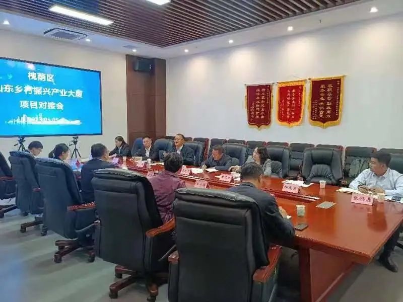 周局长首先介绍了槐荫区良好的区位优势和优越的招商环境,对山东乡村振兴产业发展大厦计划落户槐荫表示欢迎。集团董事长李辉重点介绍了大厦的筹备情况,李总表示,大厦筹备以来得到了省市县各级政府的大力支持,省内农业产业化企业踊跃报名,有信心将大厦尽快落地运营。省农促会秦书记重点介绍了山东省农业产业化协会的情况和山东省农业产业化发展现状以及作为十强产业协会之一助力企业发展的情况,表示将全力支持大厦尽快落地槐荫。