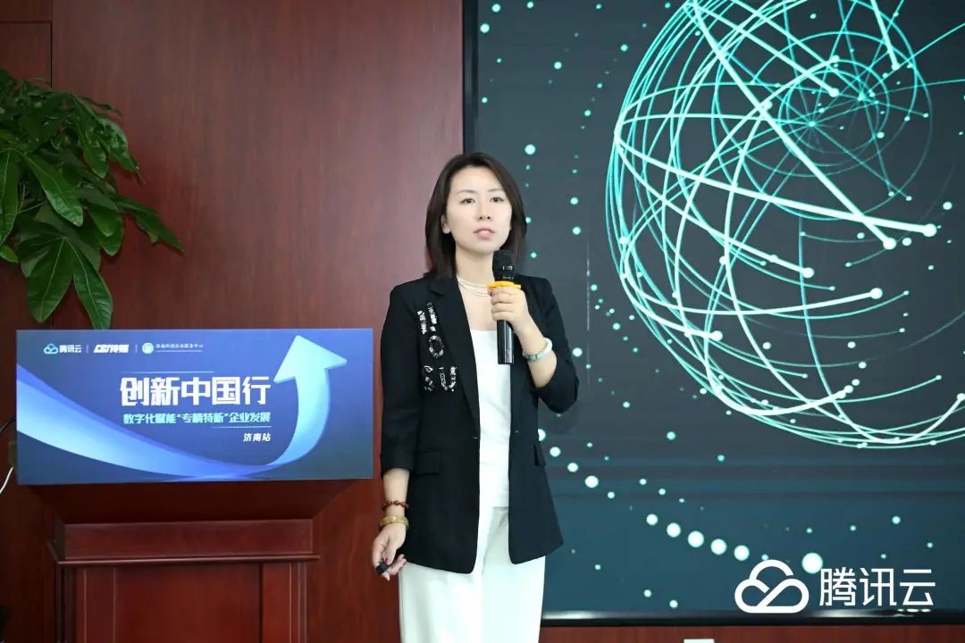 会议由济南科创企业服务中心主任万艺林致欢迎词,邀请济南中小企业公共服务中心主任毛明辉做《优质中小企业梯度培育政策解读与务实操作》的主题分享,同时会议还邀请了腾讯云技术解决方案总监王宇、山东开创云计算有限公司CEO 陈金娜等专家针对专精特新企业成长和数字化赋能分别做了分享。