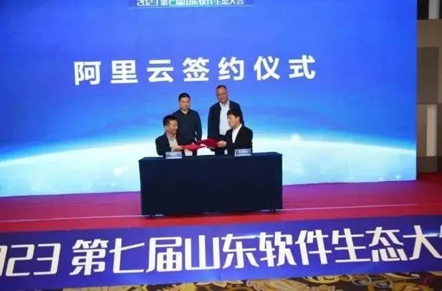 阿里云计算有限公司与山东省软件协会服务外包分会(山东软件众包众创产业联盟)现场签约,集团英网公司副总经理诸葛祥彬进行签约,董事长李辉见证签约。