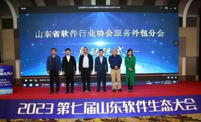 随后举行了山东省软件行业协会服务外包分会的启动仪式,由山东省软件行业协会秘书长刘灿军、山东软件众包众创产业联盟理事长李辉、山东软件众包众创产业联盟秘书长诸葛祥彬、国信安全山东中心主任吴博、泛微网络山东大区副总经理唐乐、山东百谷信息技术有限公司副总经理王丽共同启动。
