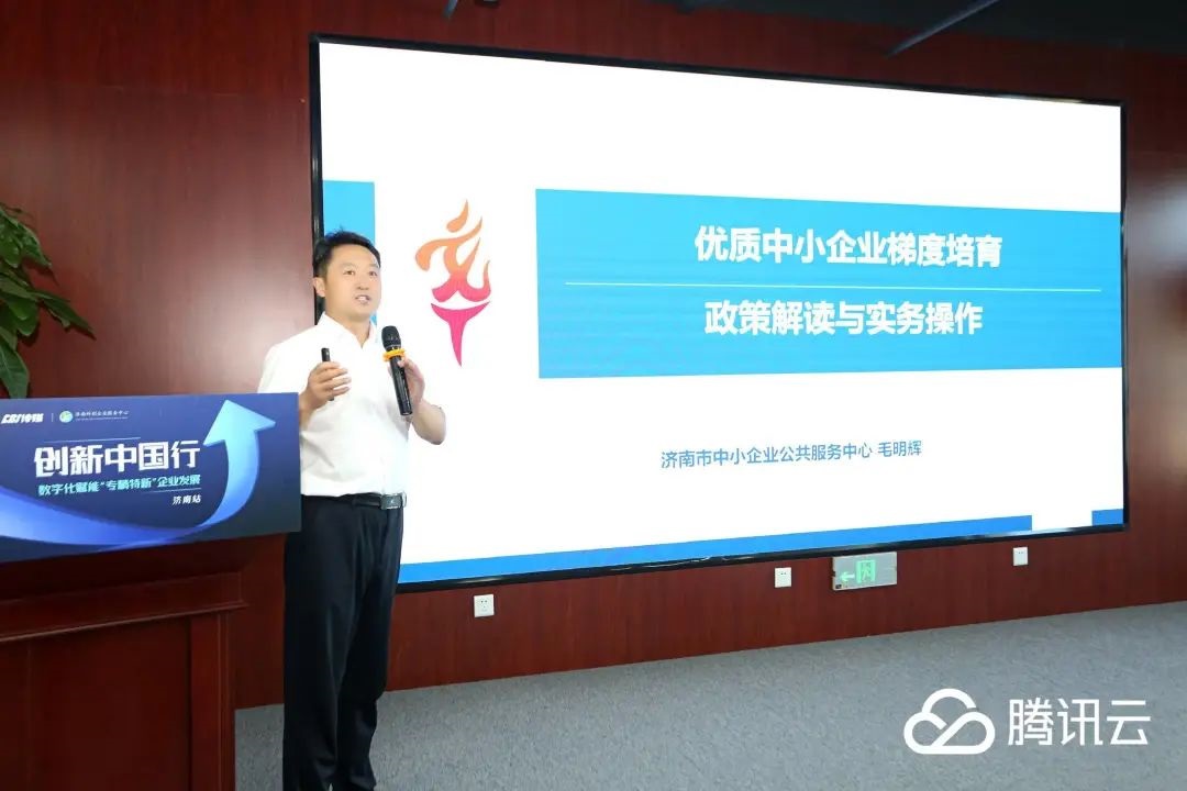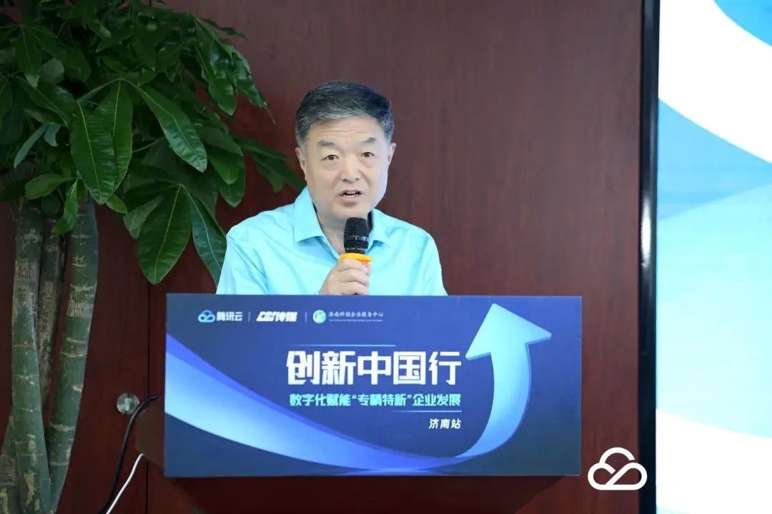 会议由济南科创企业服务中心主任万艺林致欢迎词,邀请济南中小企业公共服务中心主任毛明辉做《优质中小企业梯度培育政策解读与务实操作》的主题分享,同时会议还邀请了腾讯云技术解决方案总监王宇、山东开创云计算有限公司CEO 陈金娜等专家针对专精特新企业成长和数字化赋能分别做了分享。